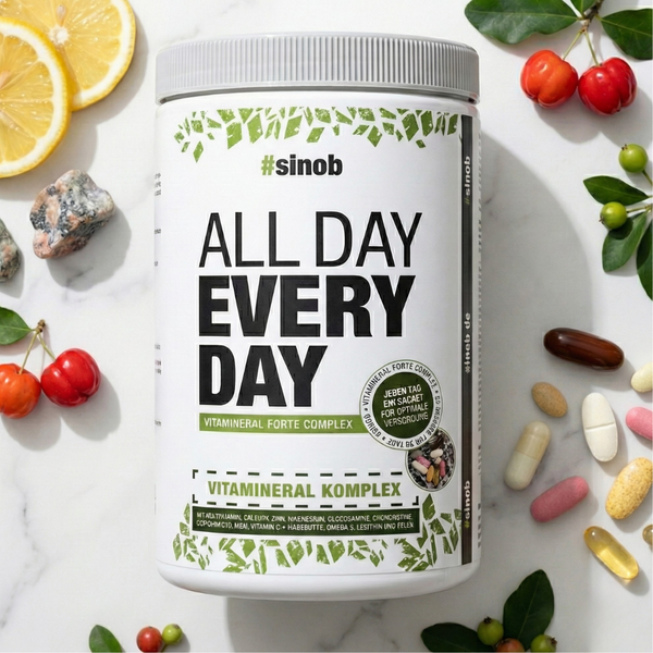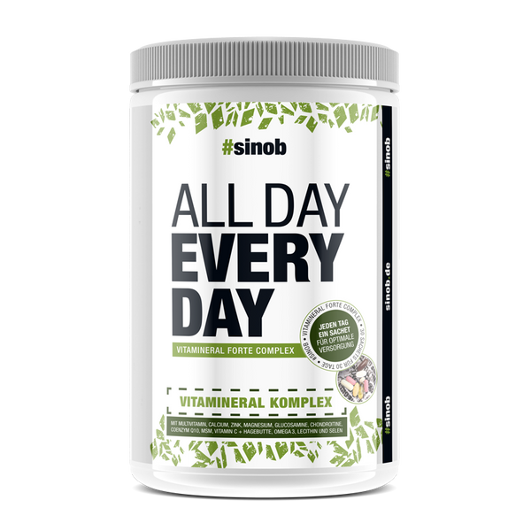 Genau so wichtig , wie die passende Zufuhr an den Makronährstoffen Protein, Fett und Kohlenhydraten sind nämlich auch die Mikros , also z.B. Vitamine bzw. Mineralstoffe . Ohne das eine hilft das andere nicht und dein Körper kann nicht effizient funktionieren . Die Folge: Anfälligkeit für Krankheiten, Mangelerscheinungen etc. Damit dir das nicht passiert, du dich immer top und auf der Höhe fühlen kannst leistet unser All day den perfekten Beitrag zu deiner täglichen Ernährung.