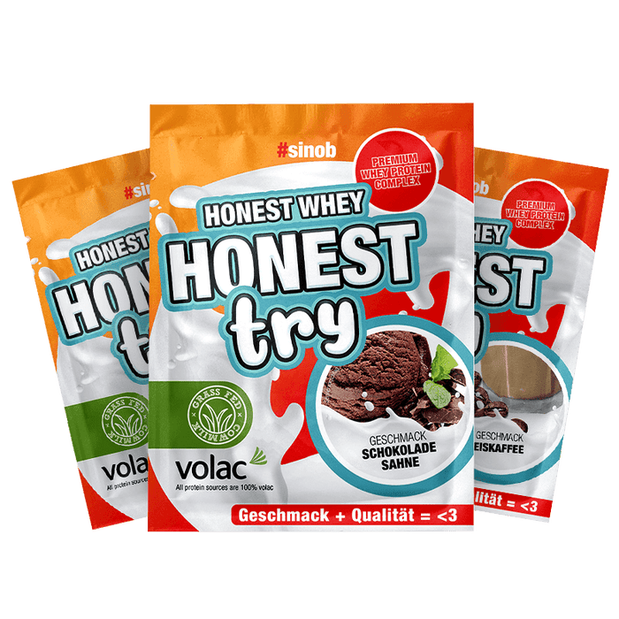 Für den Anfang bieten wir dir unser Honest Whey+ in handlichen 30 g Probesachets an. So kannst du verschiedene Geschmacksrichtungen ausprobieren und herausfinden, welcher Flavor dein absoluter Favorit ist.